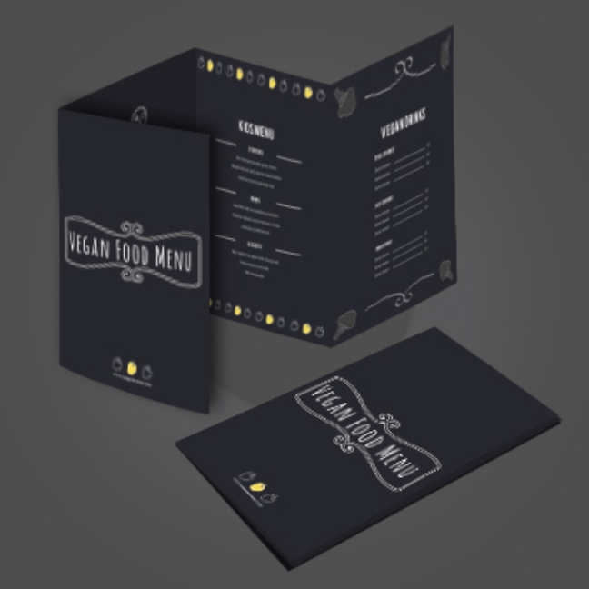 Choose from our wide range of pocket menu templates or design your own to suit your brand’s identity. Features available for pocket menus include sharp images and color reproduction, customizable templates with the ability to include text and pictures, and a strong 250 GSM paper that ensures longevity.
