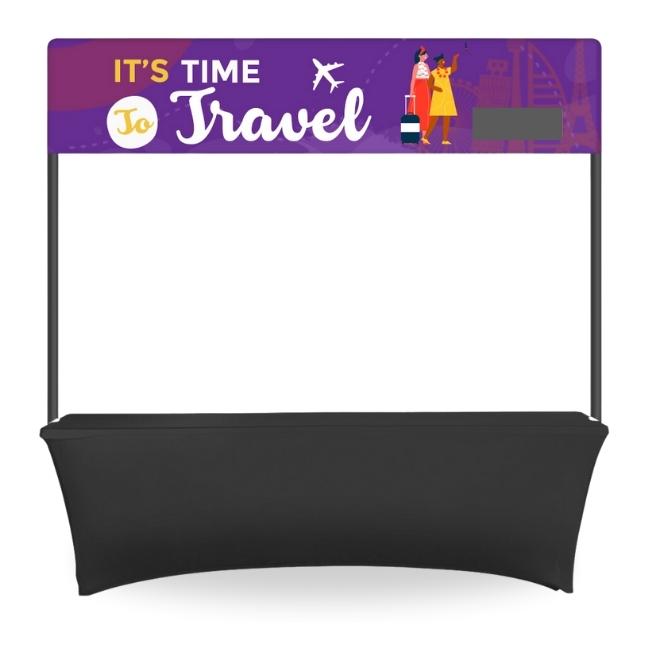 - Versatile and Space-Saving: Table top banner displays are designed to maximize visibility while occupying minimal space. They are available in different sizes to fit various table dimensions, such as 4FT, 6FT, and 8FT tables. This versatility allows you to adapt the display to different venues and table setups. These displays are a great choice when space is limited, as they can be placed directly on top of a table, making efficient use of your booth or event space.